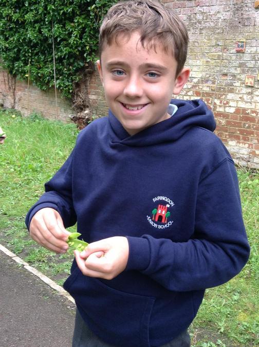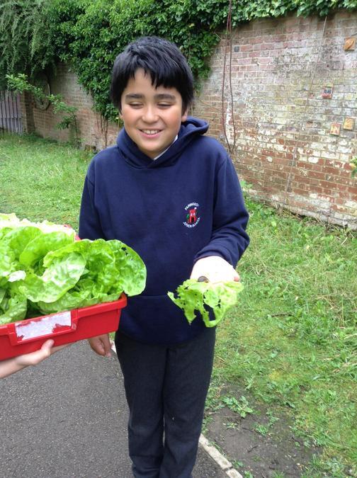Picking lettuces and peas from the garden for the school cook