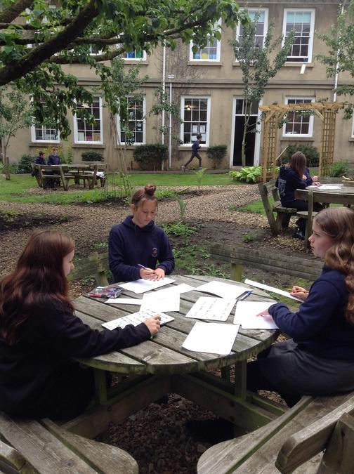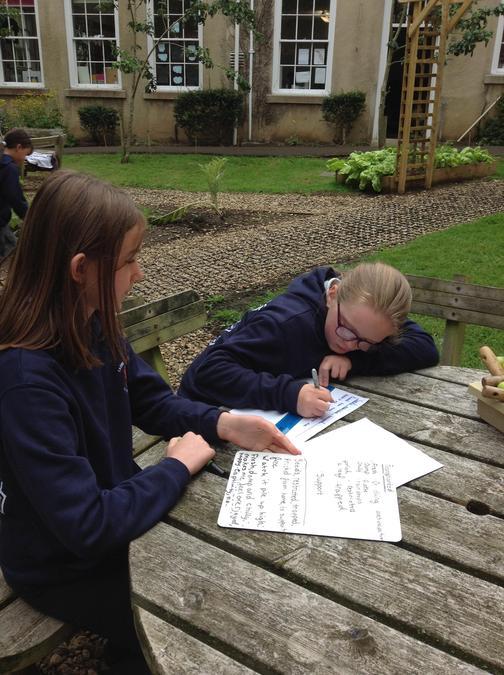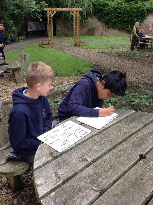 Writing our haiku poems in the garden